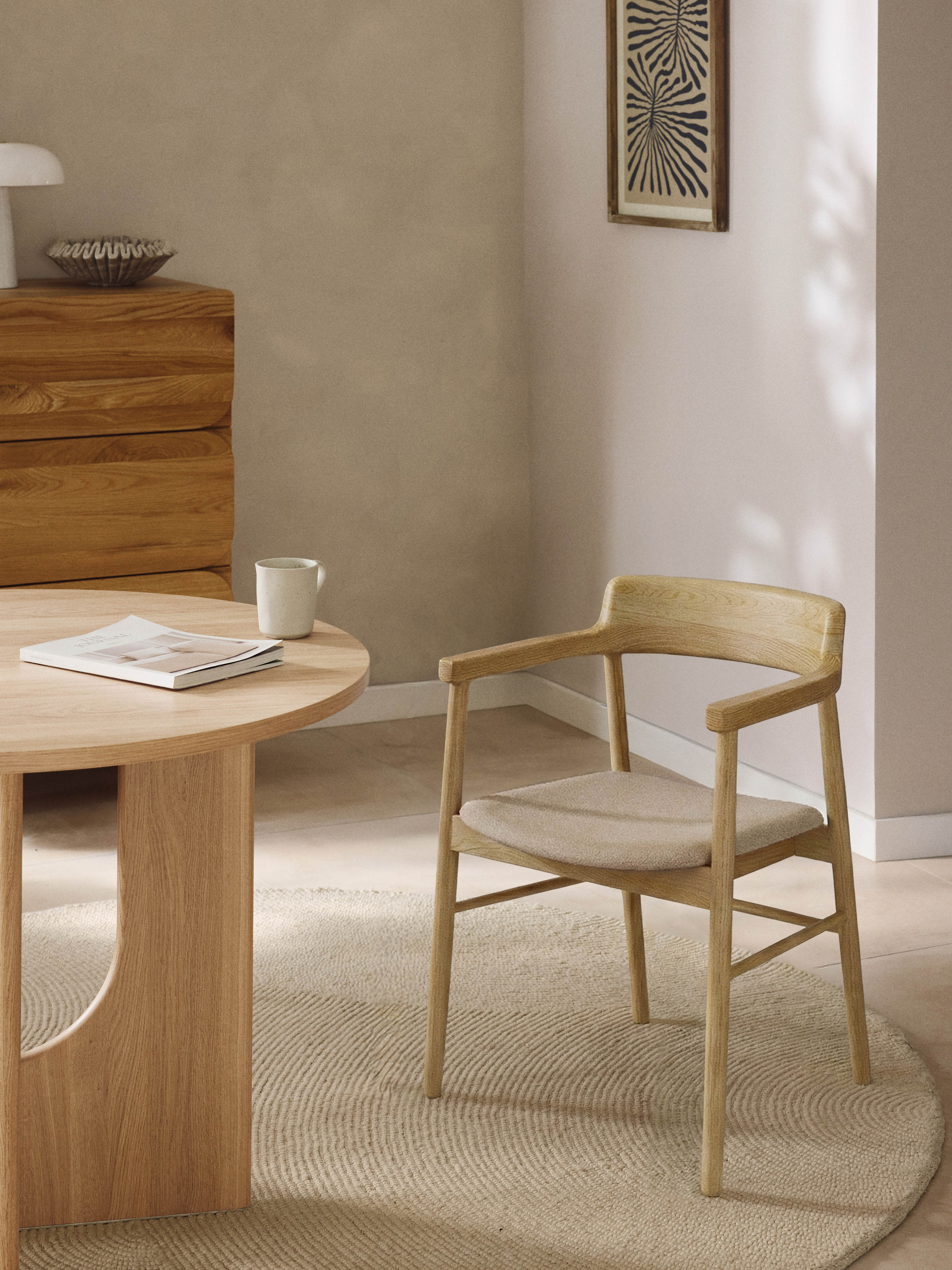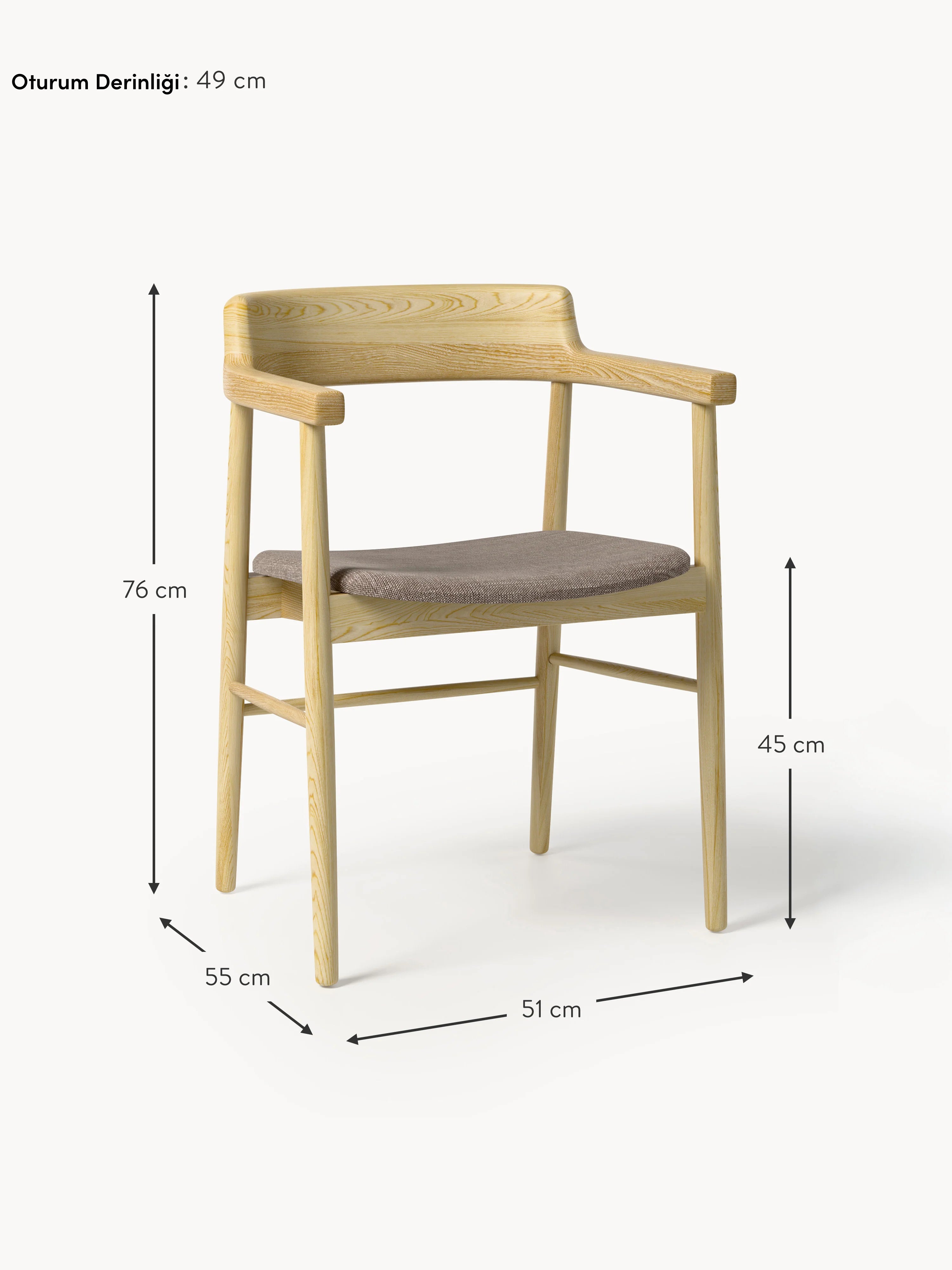 Pira Bej Minderli Ahşap Sandalye Meşe