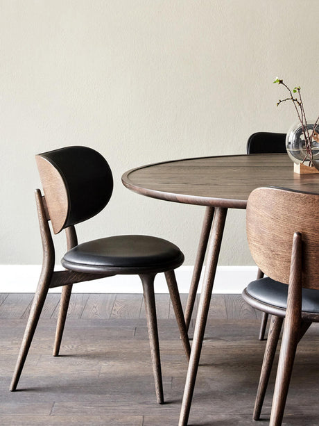 Asporsh Ahşap Sandalye Siyah Deri Koyu Meşe