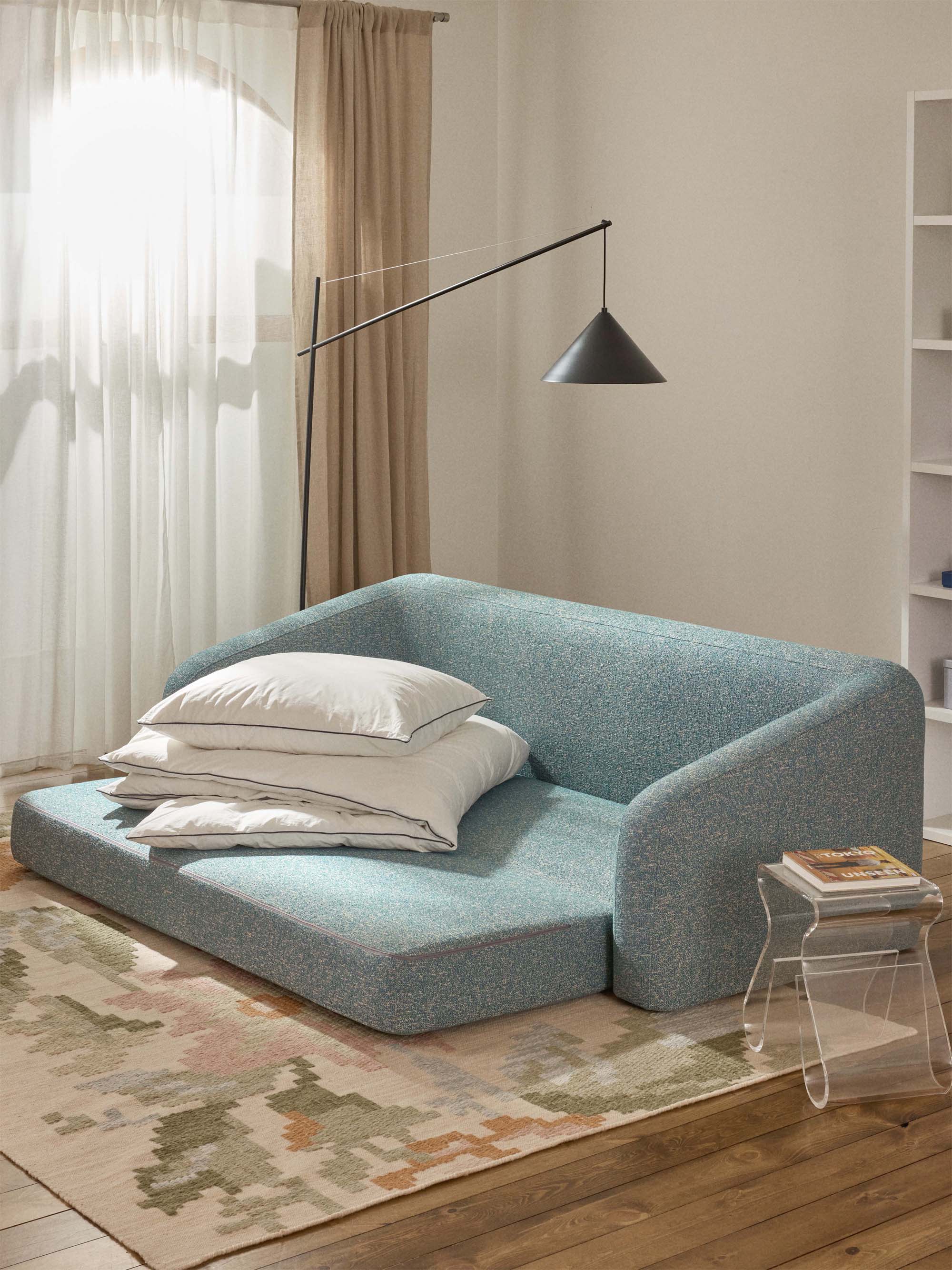 Fara Yataklı Üçlü Koltuk Mavi Benekli Bukle