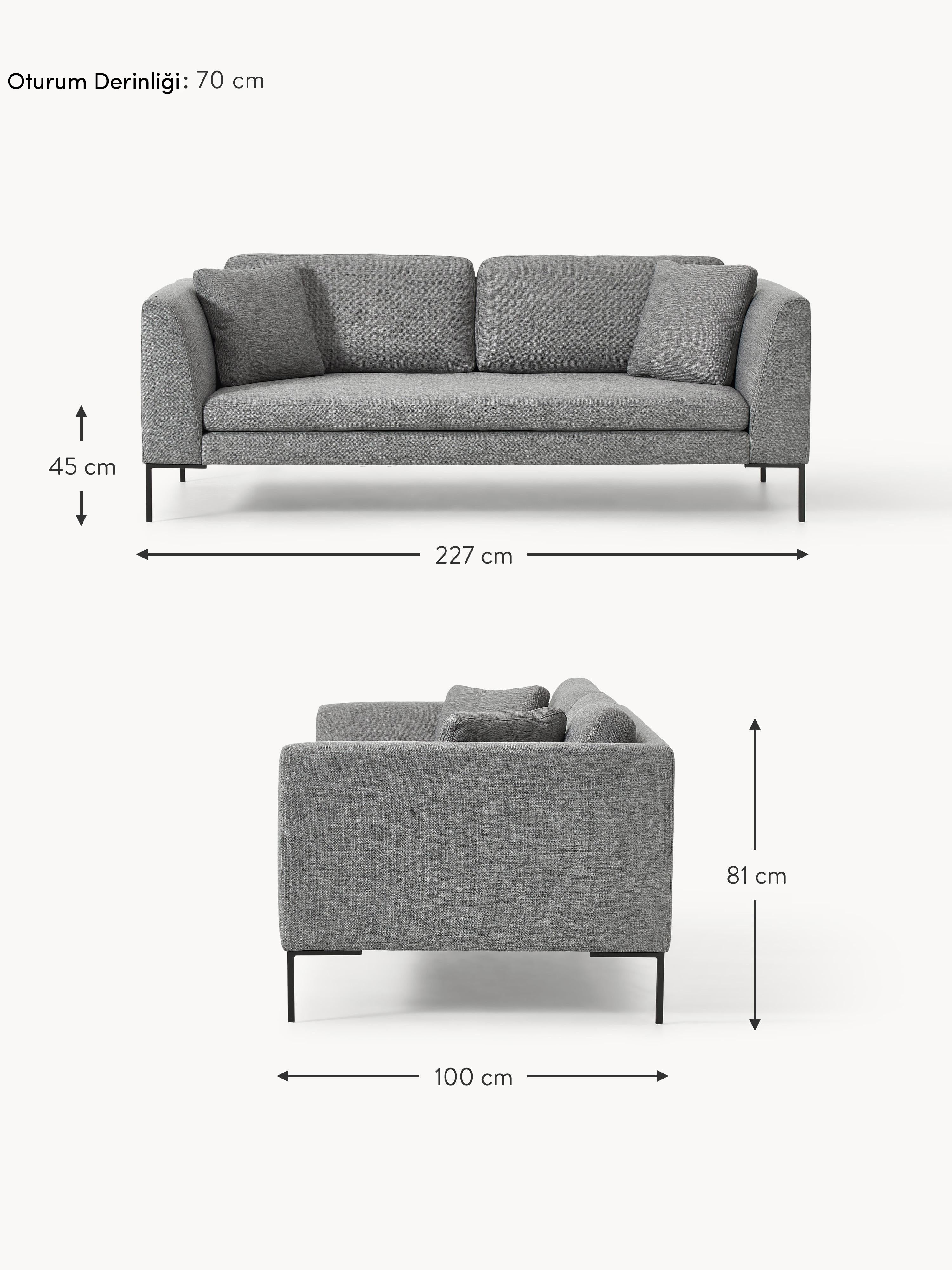 Sade Üçlü Koltuk Koyu Gri