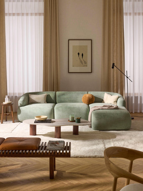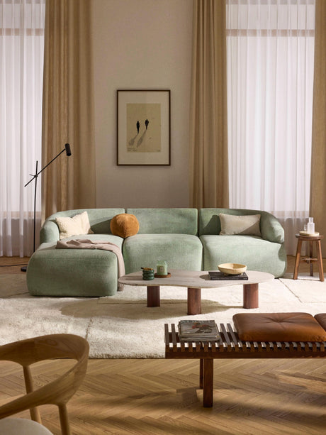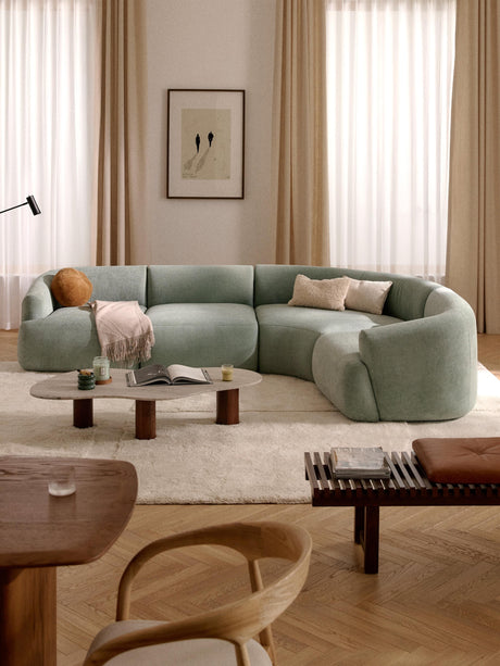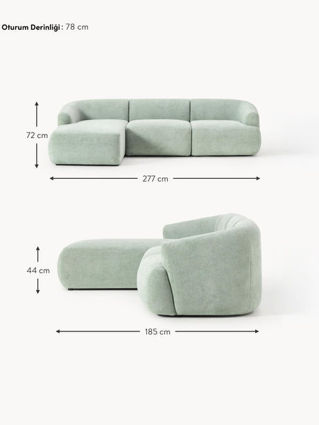 Modern Köşe Koltuk Adaçayı Yeşili Dokuma Kadife