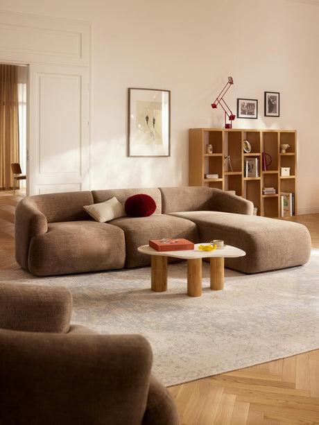 Modern Plus Köşe Koltuk Kahve Dokuma Kadife