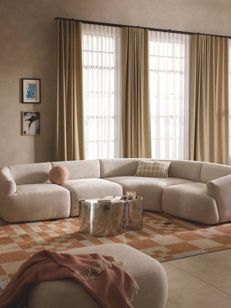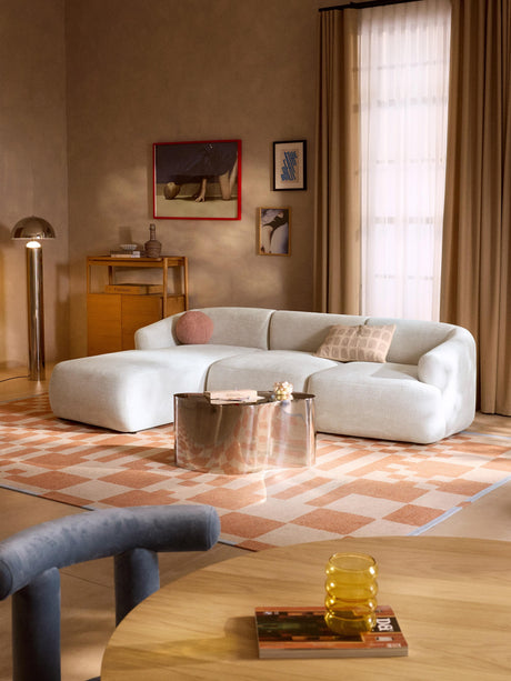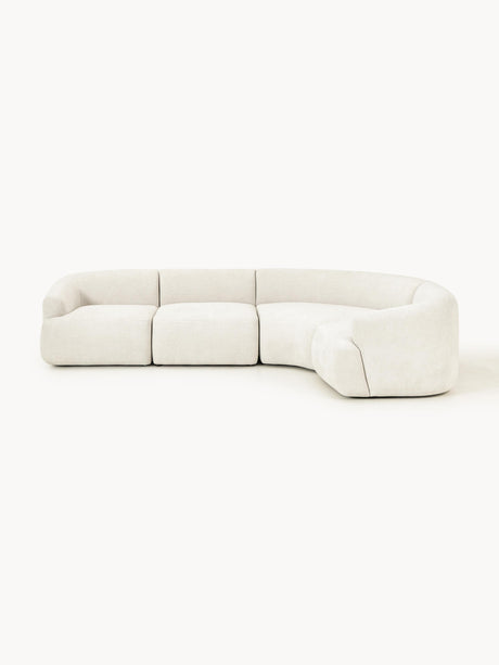 Modern Plus Köşe Koltuk Kırık Beyaz Dokuma Kadife