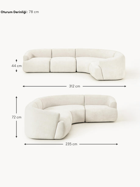 Modern Köşe Koltuk Kırık Beyaz Dokuma Kadife