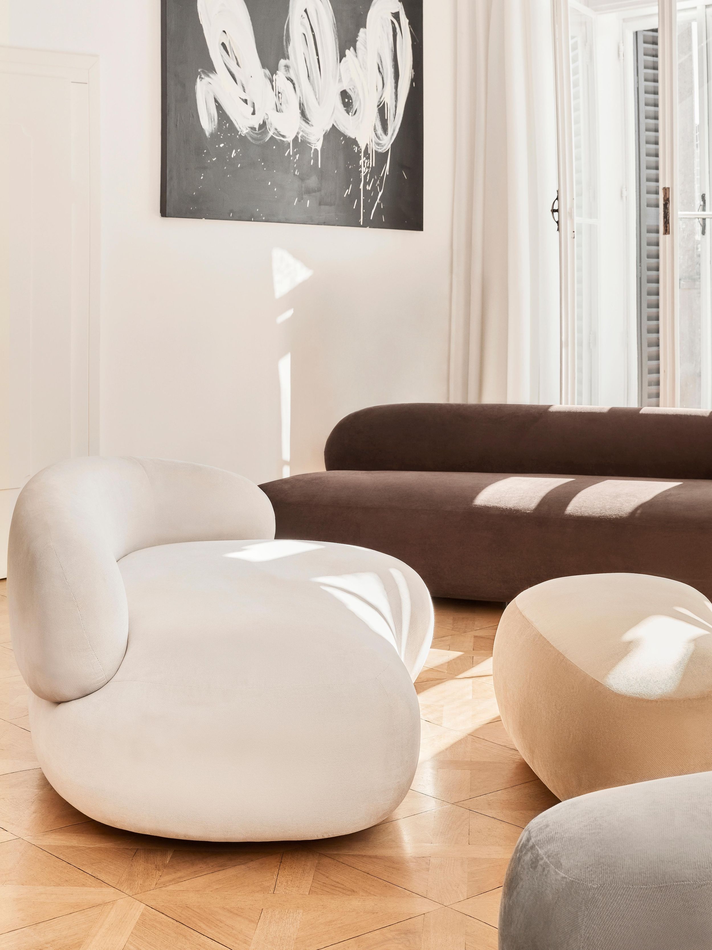 Siri Puf Üçlü Koltuk Krem