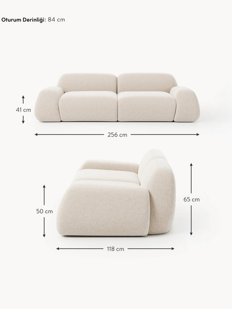 Prag Üçlü Koltuk Açık Bej Dokuma Kadife