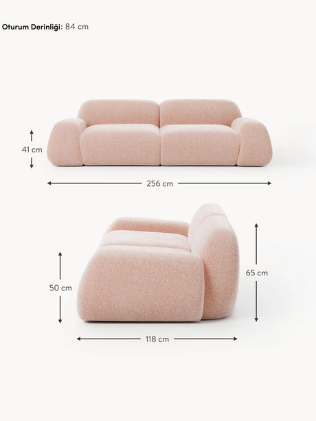 Prag Üçlü Koltuk Açık Pembe Dokuma Kadife