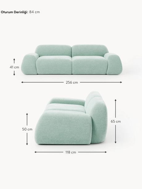Prag Üçlü Koltuk Mint Yeşili Dokuma Kadife