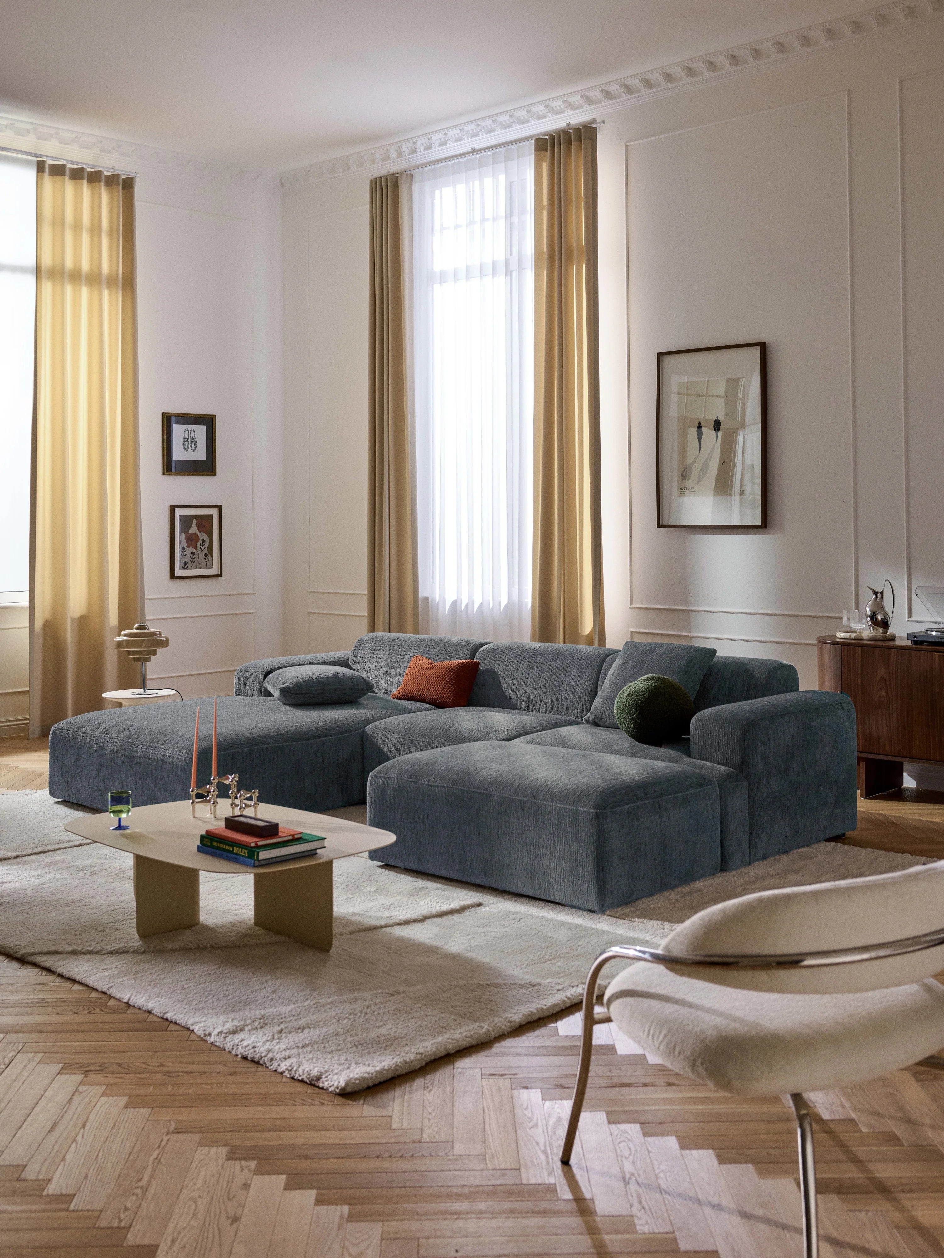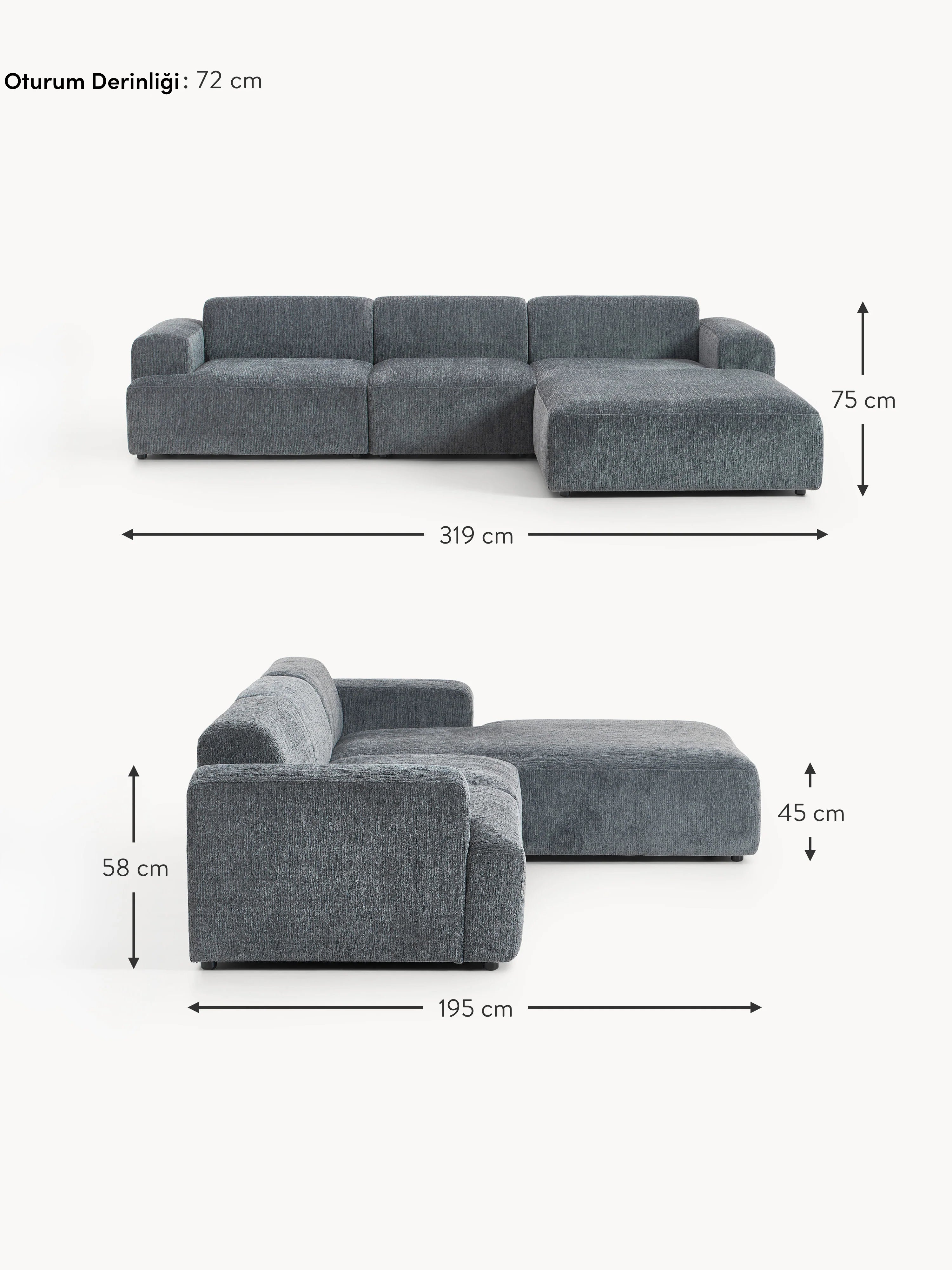 Mira Large Köşe Koltuk Gri Mavi Şönil