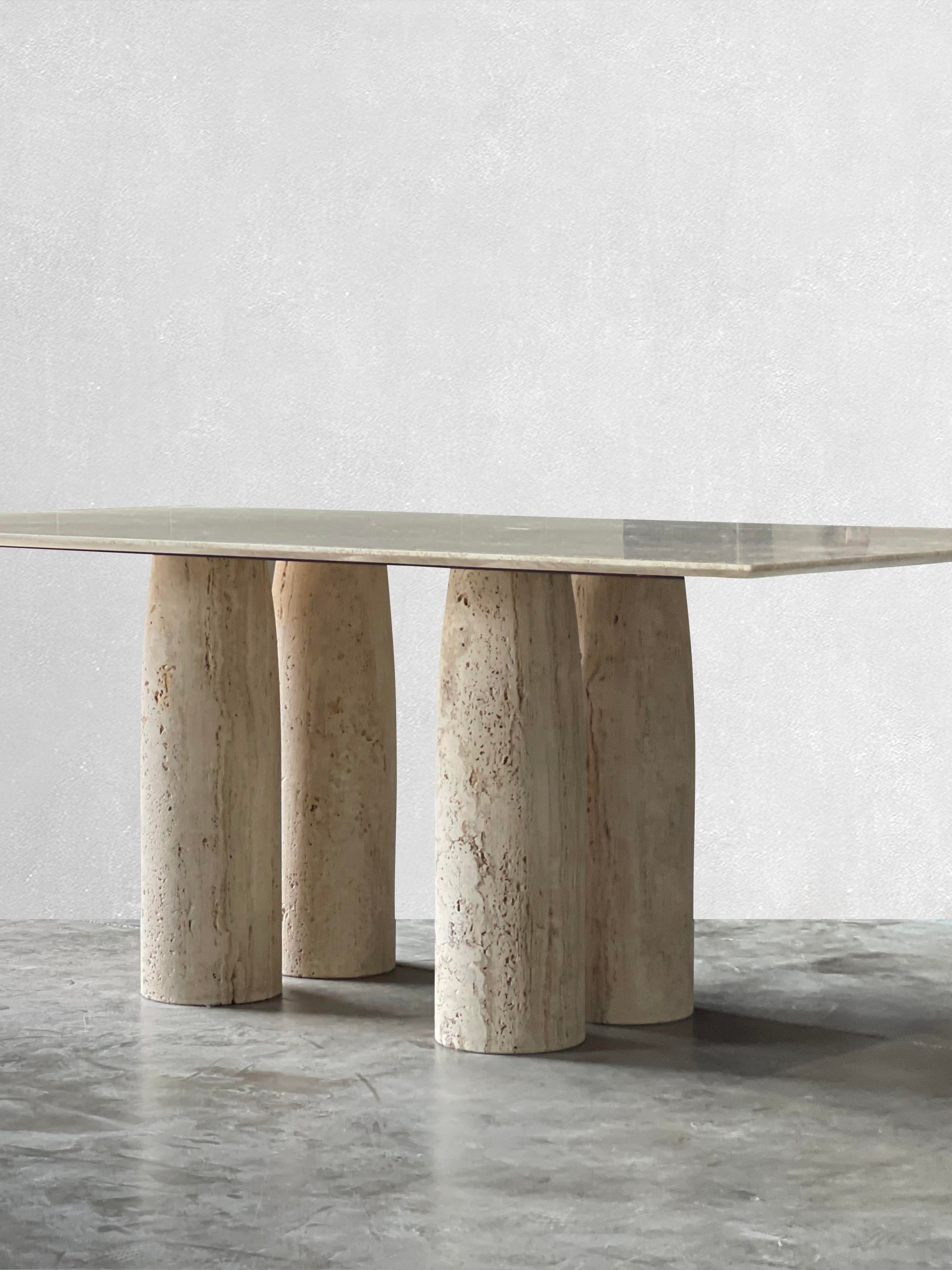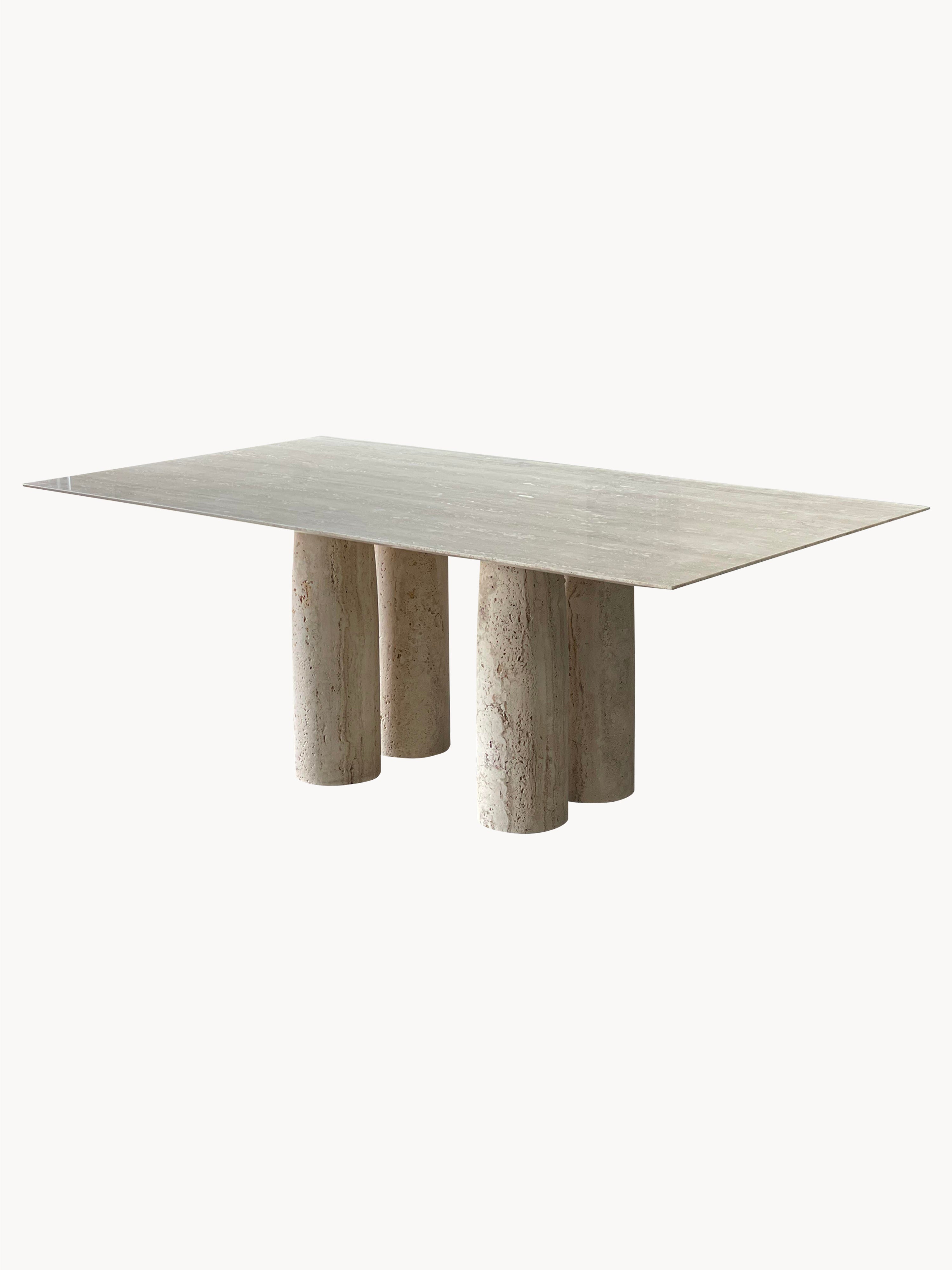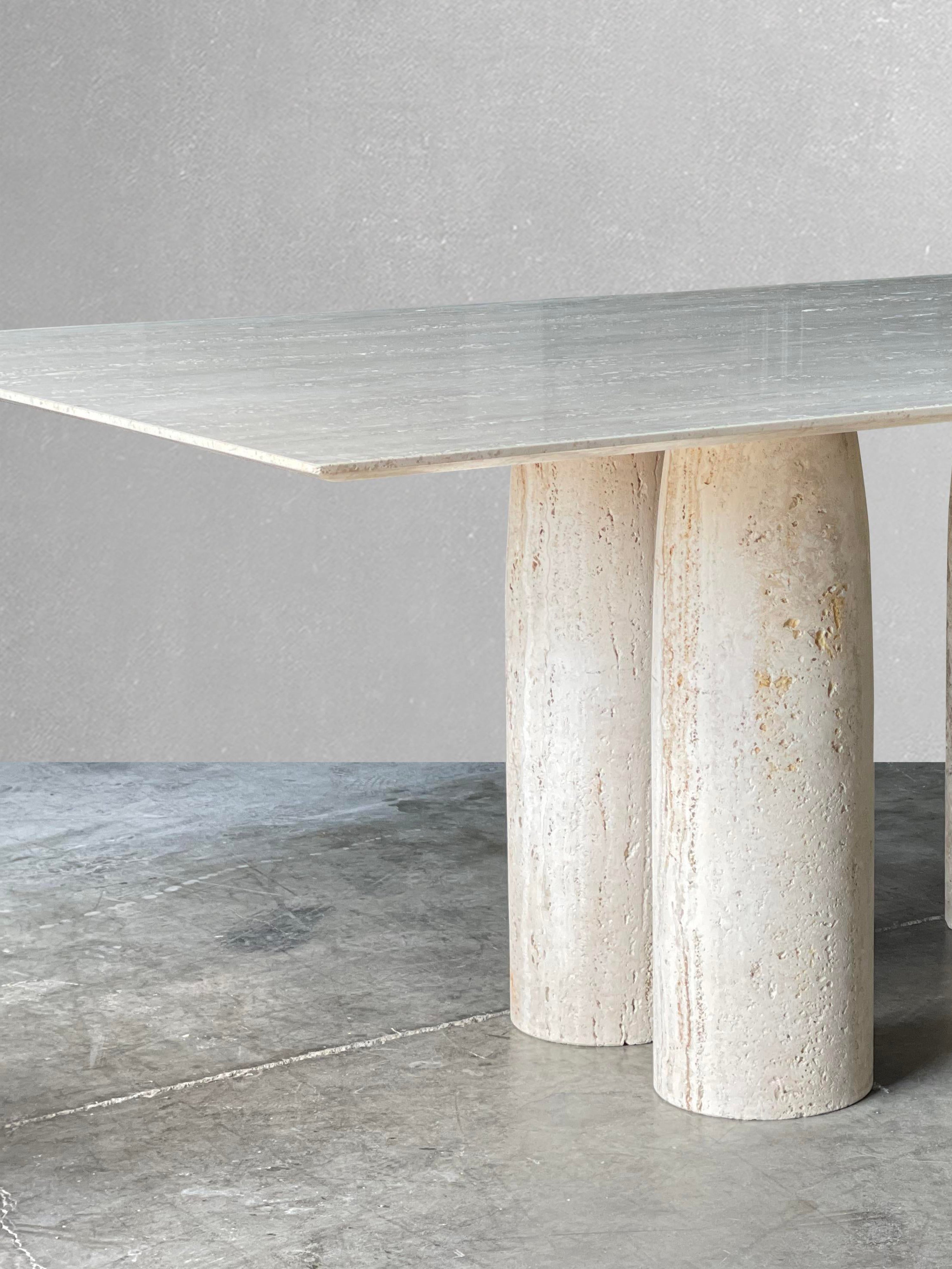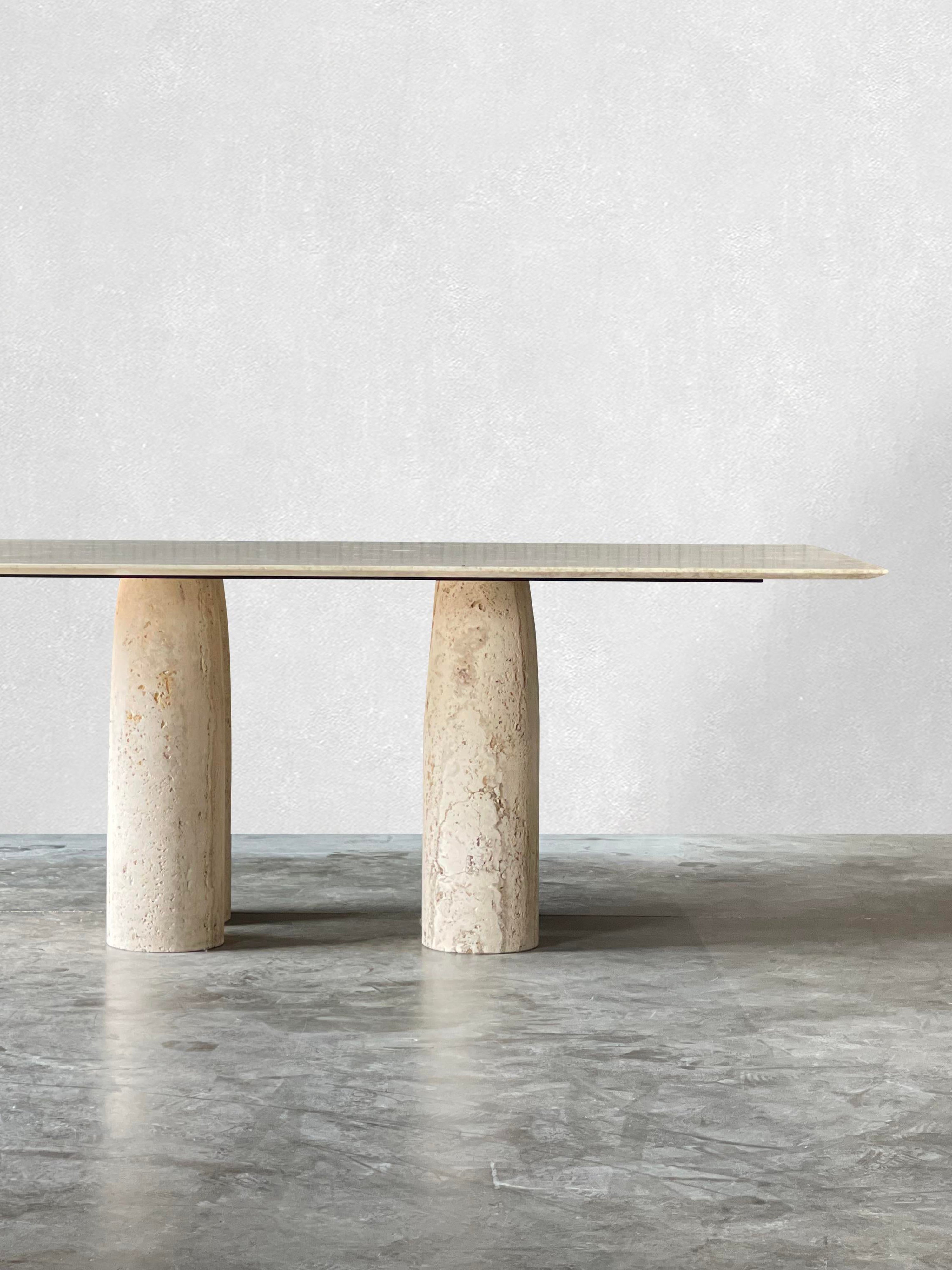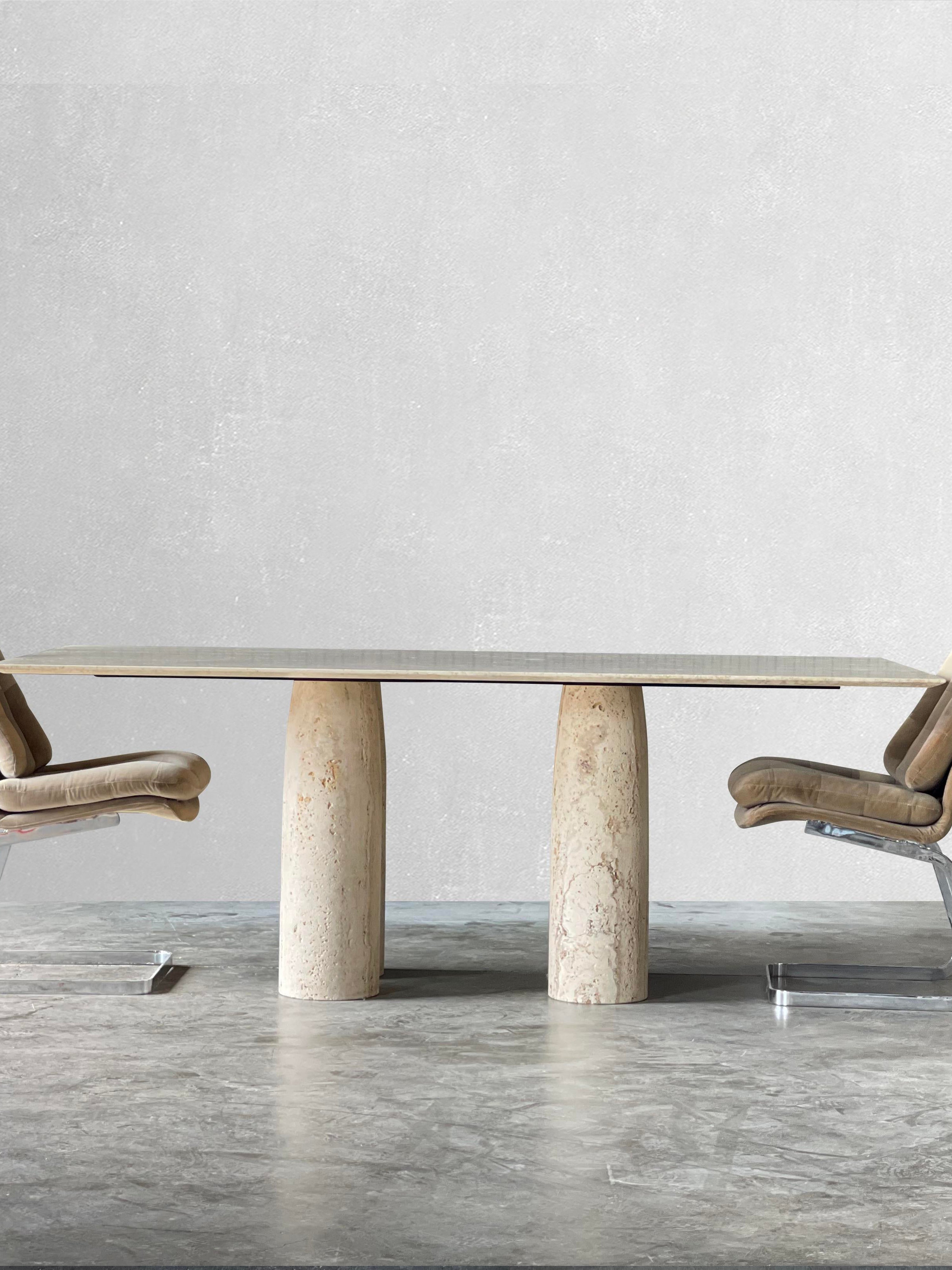 Bellini Heykelsi Ayaklı Dikdörtgen Traverten Mermer Yemek Masası