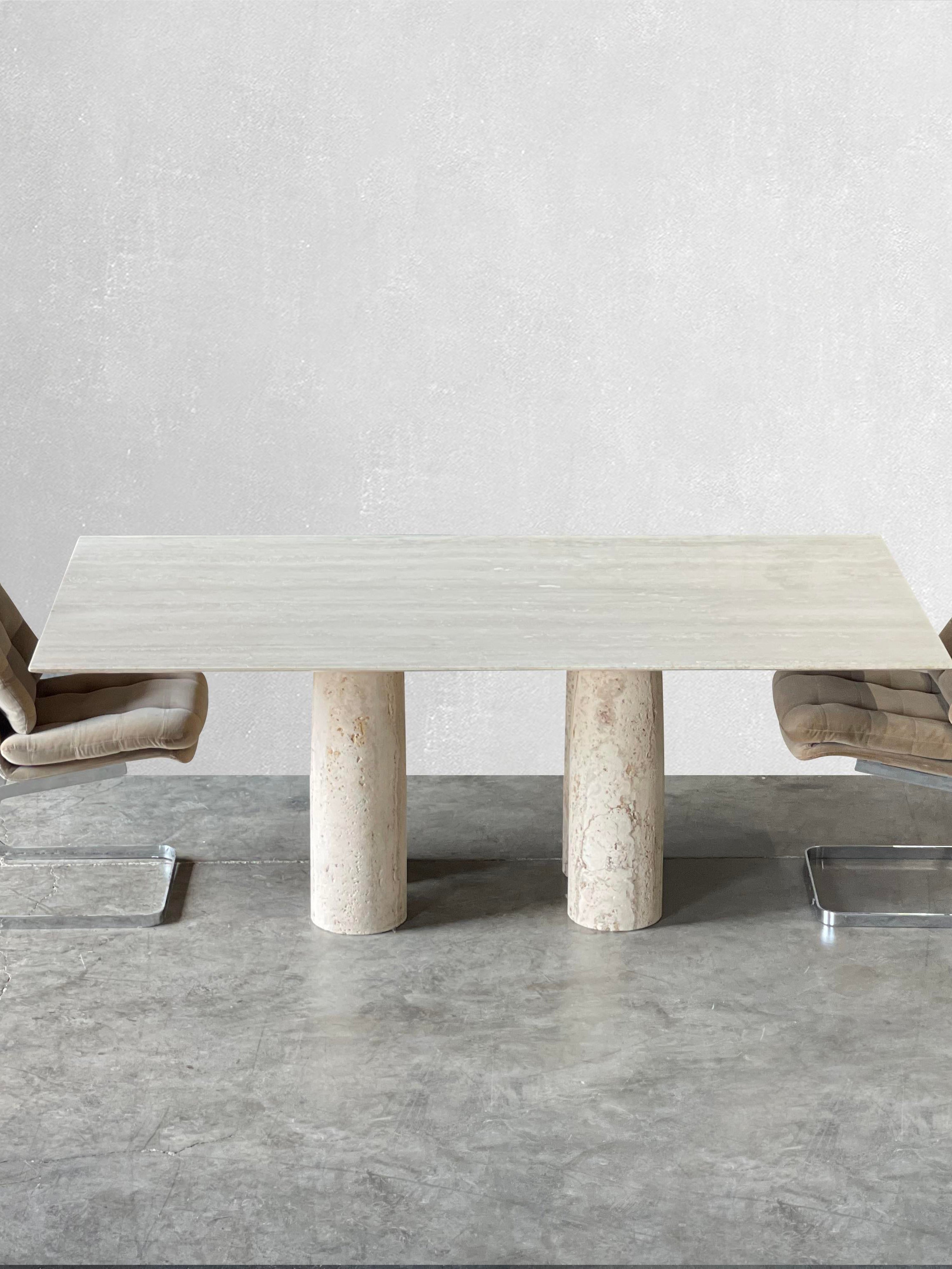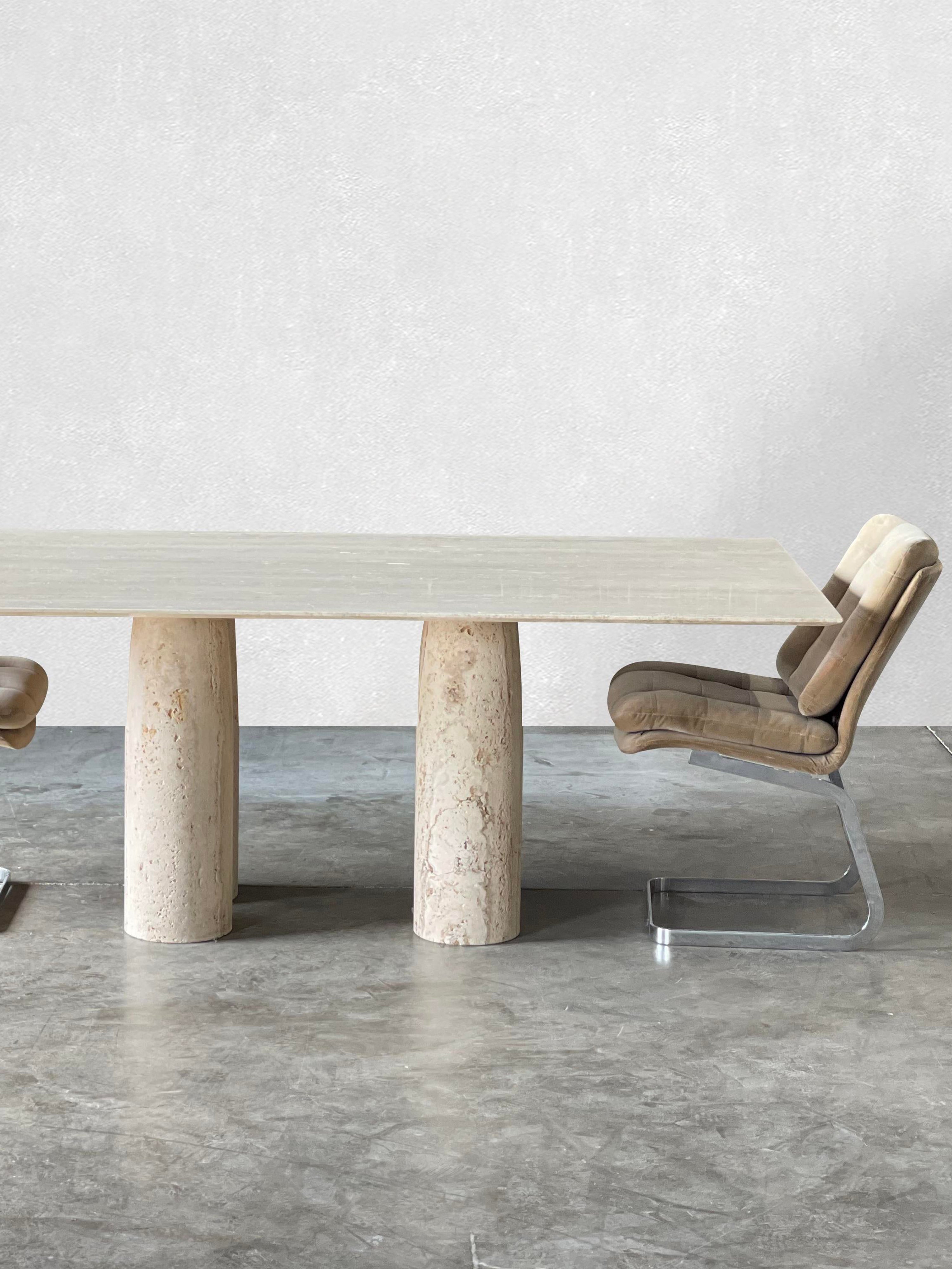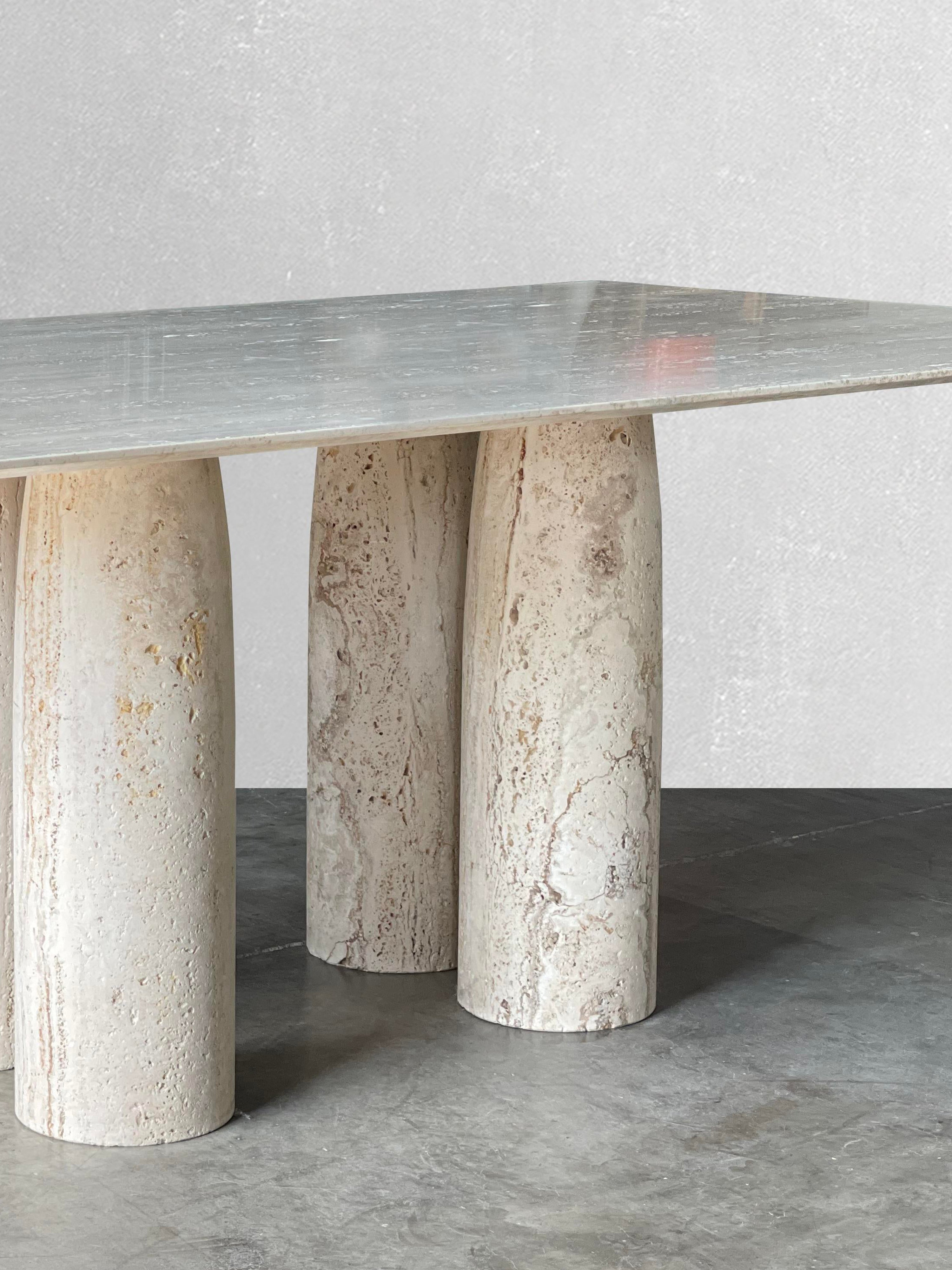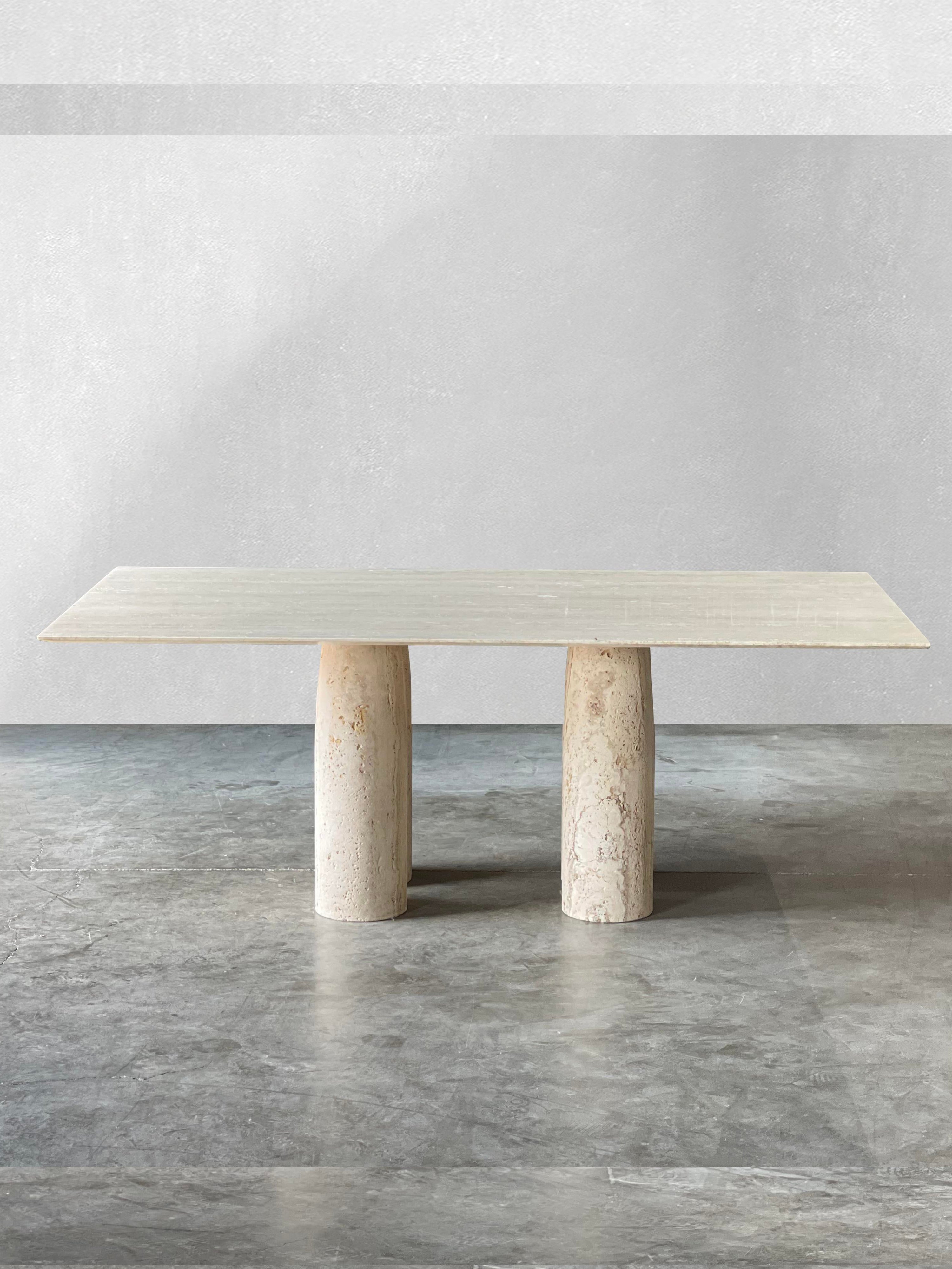 Bellini Heykelsi Ayaklı Dikdörtgen Traverten Mermer Yemek Masası