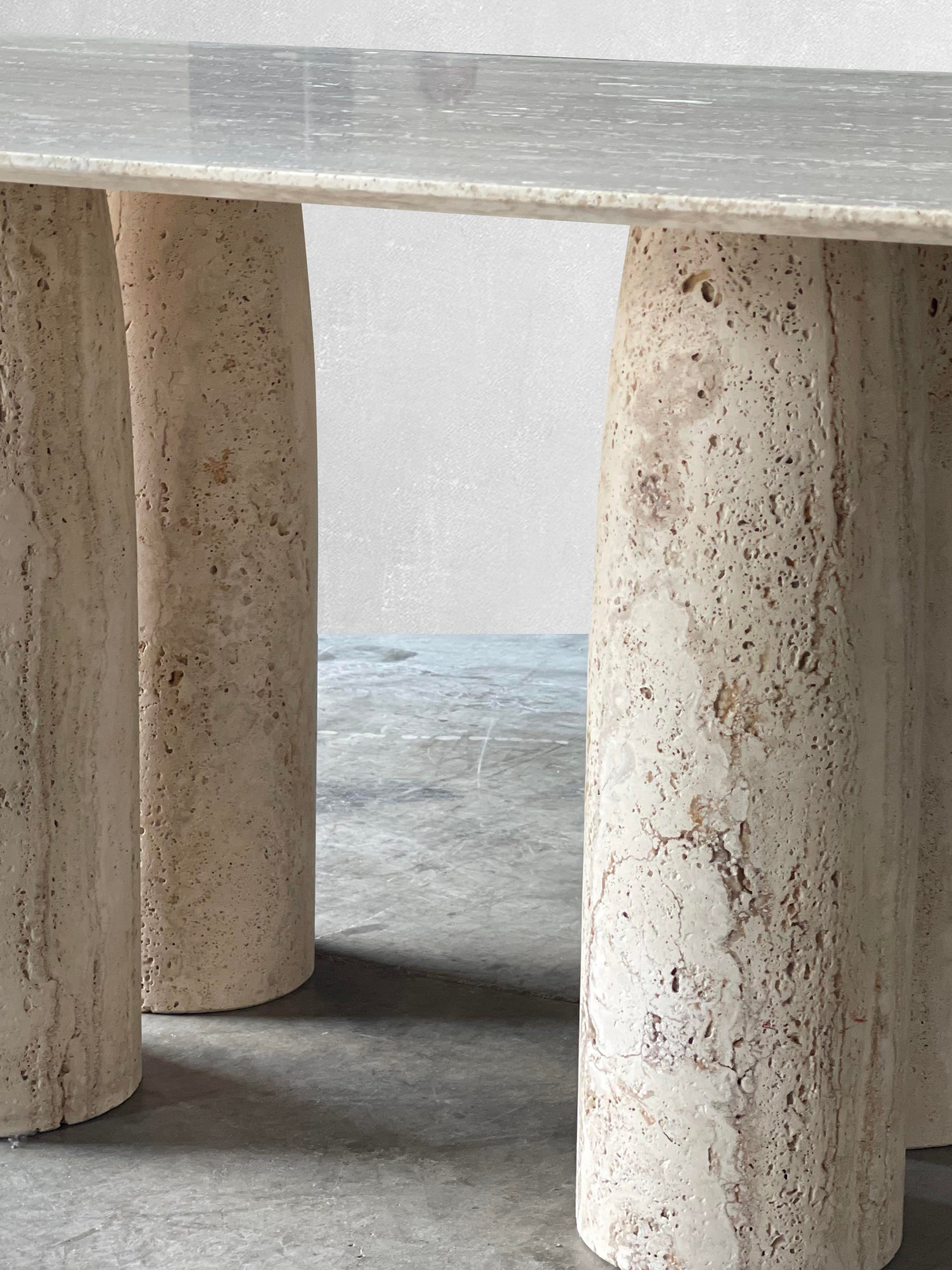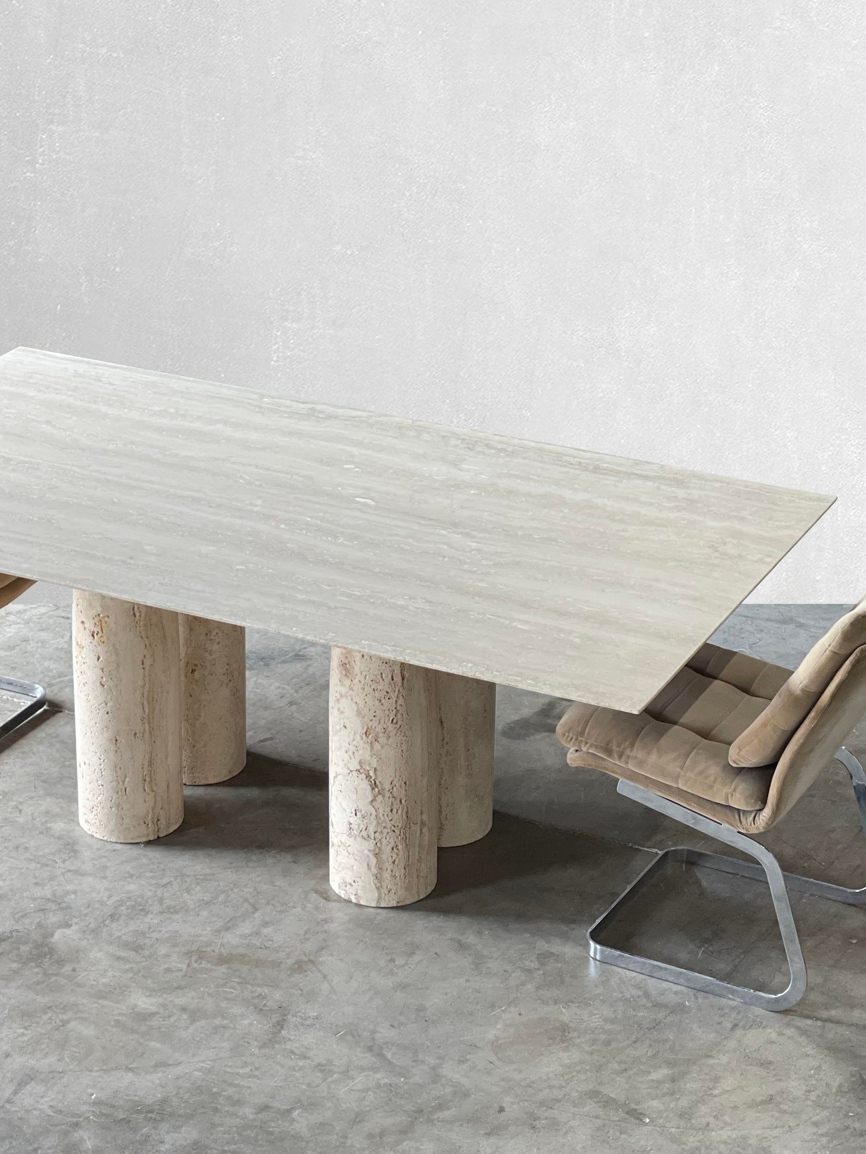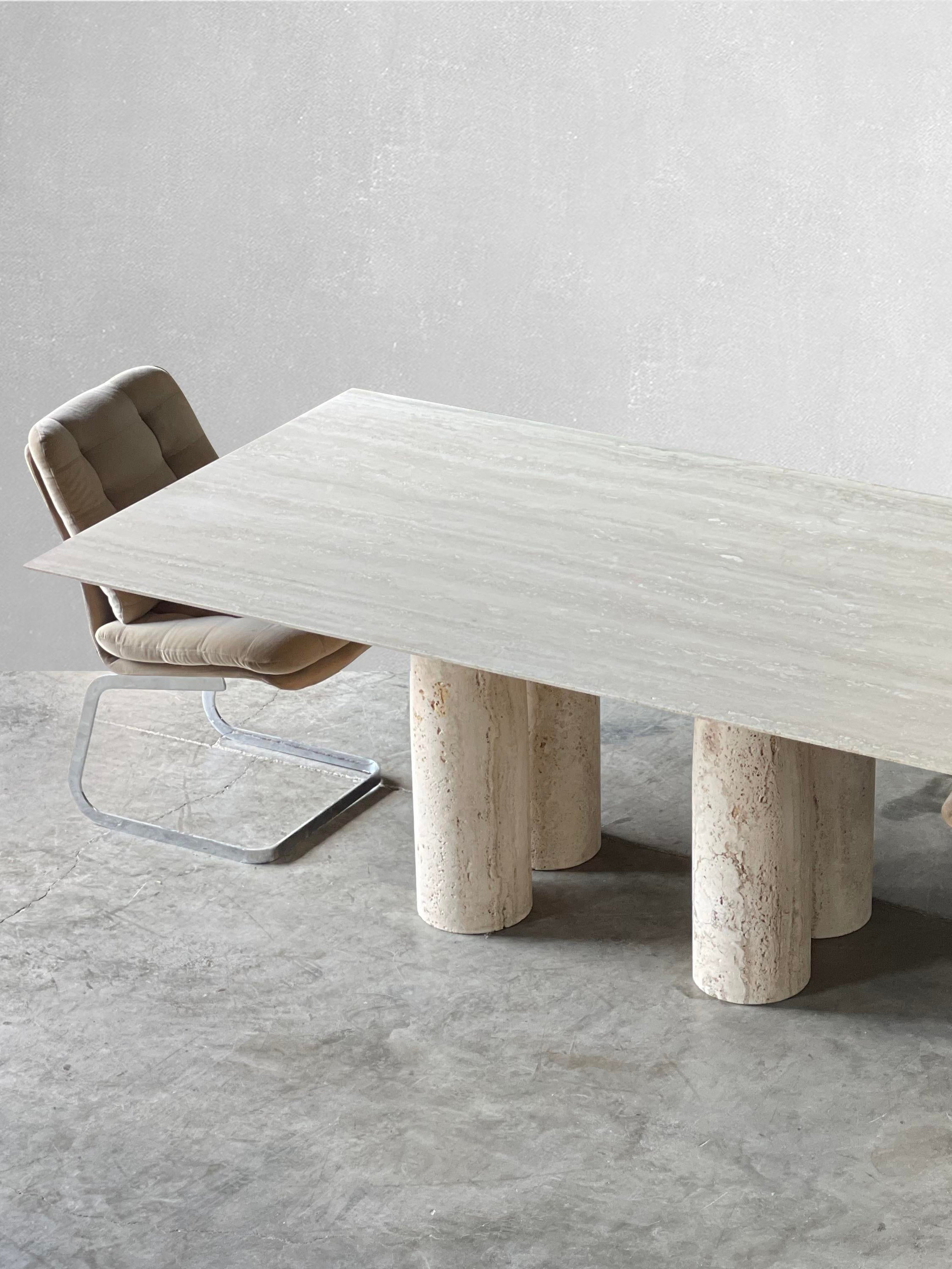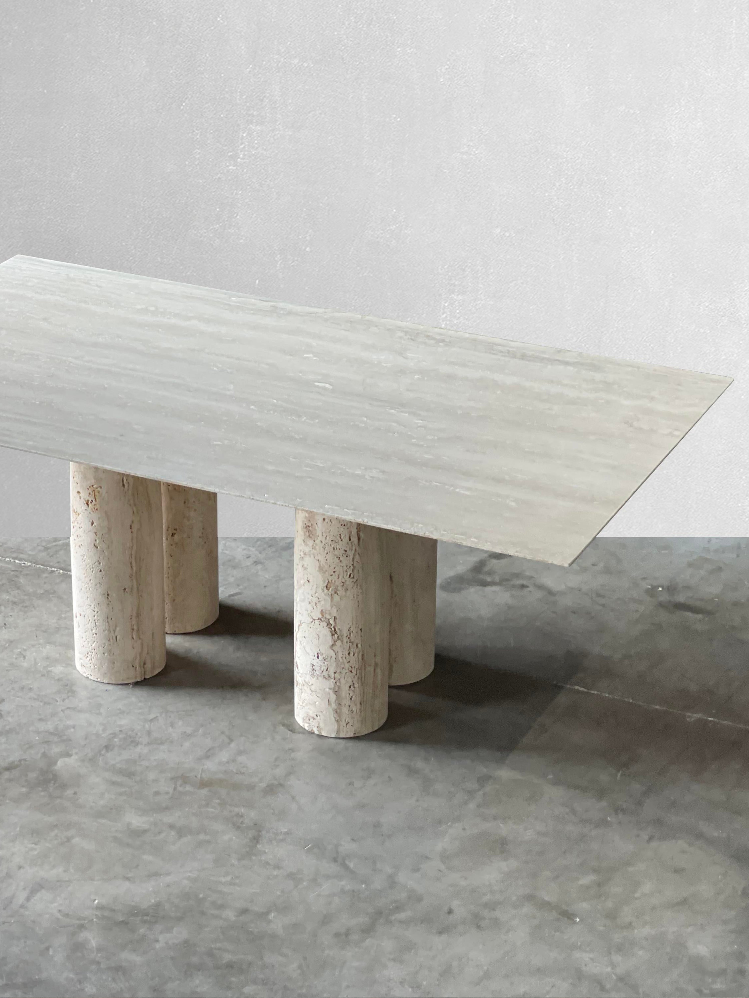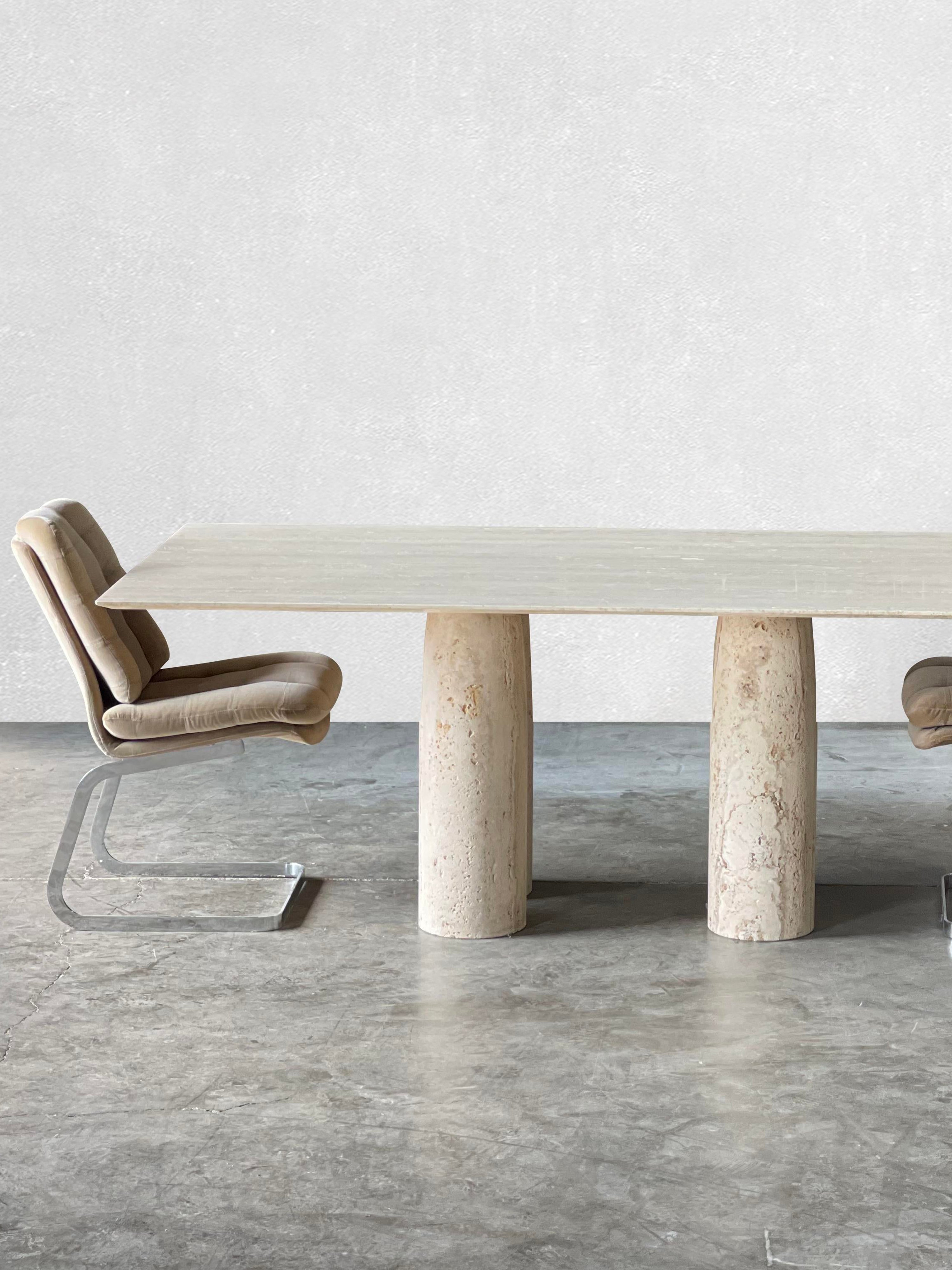 Bellini Heykelsi Ayaklı Dikdörtgen Traverten Mermer Yemek Masası