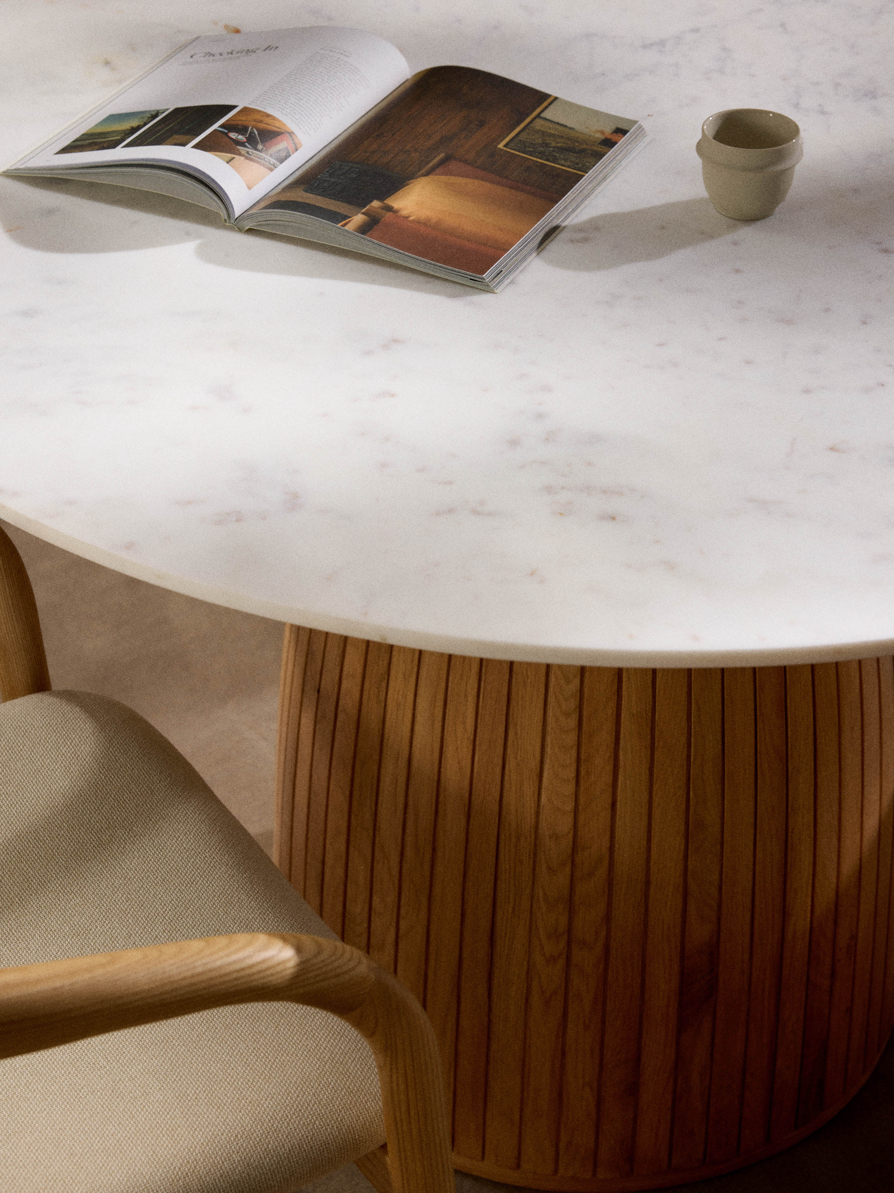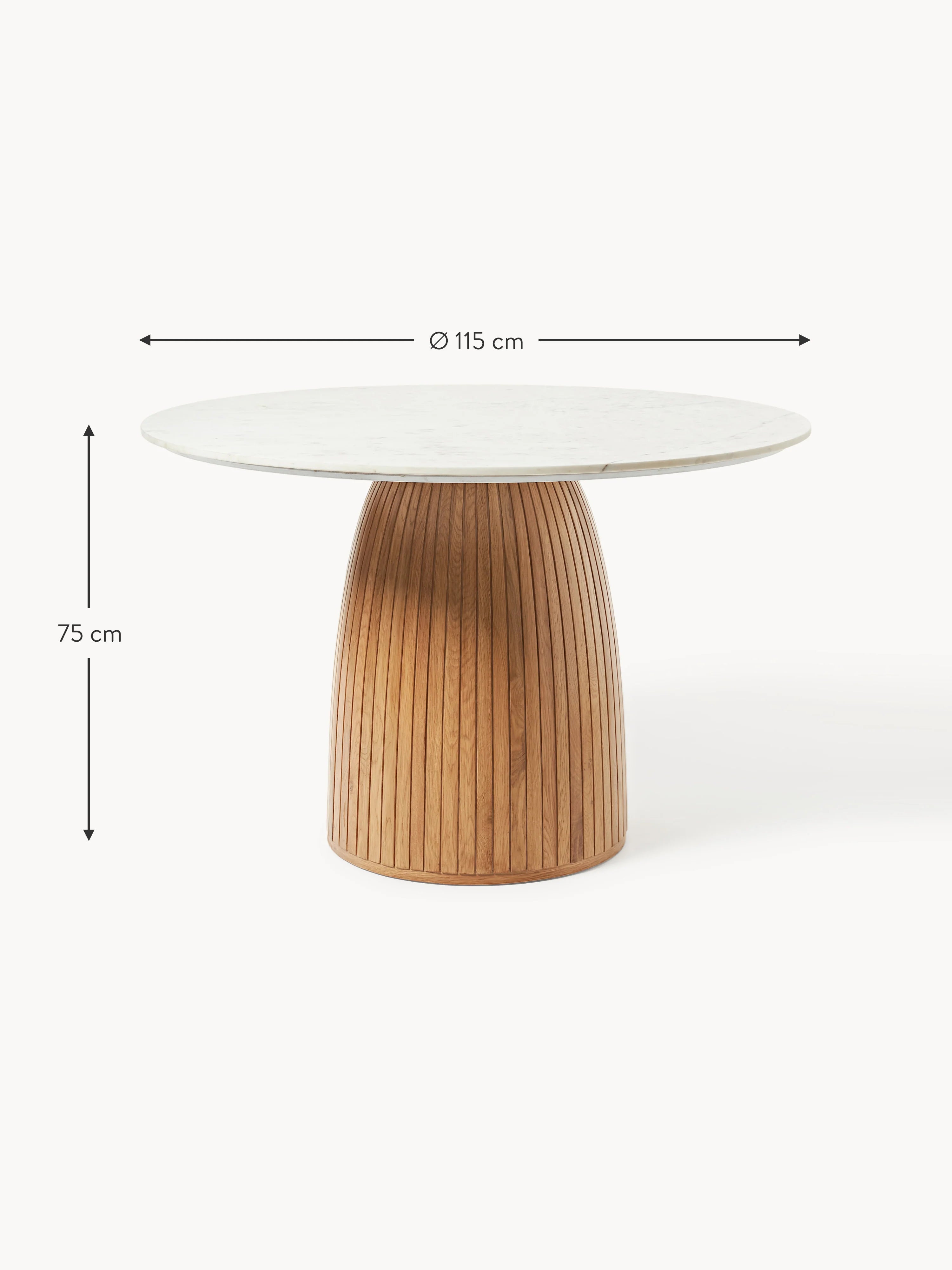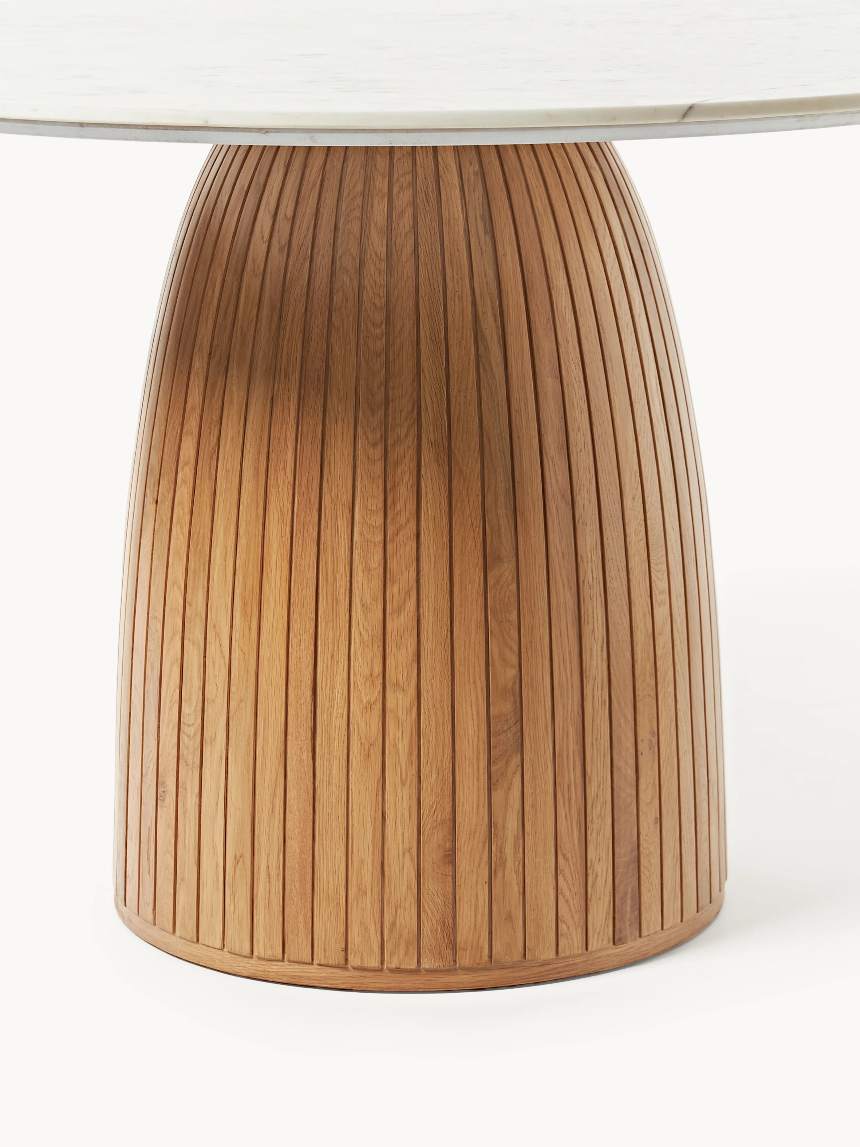 Fold Yuvarlak Beyaz Mermer Tablalı Ahşap Yemek Masası Meşe