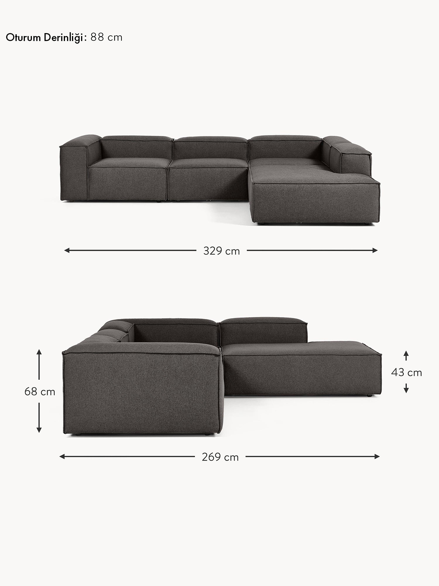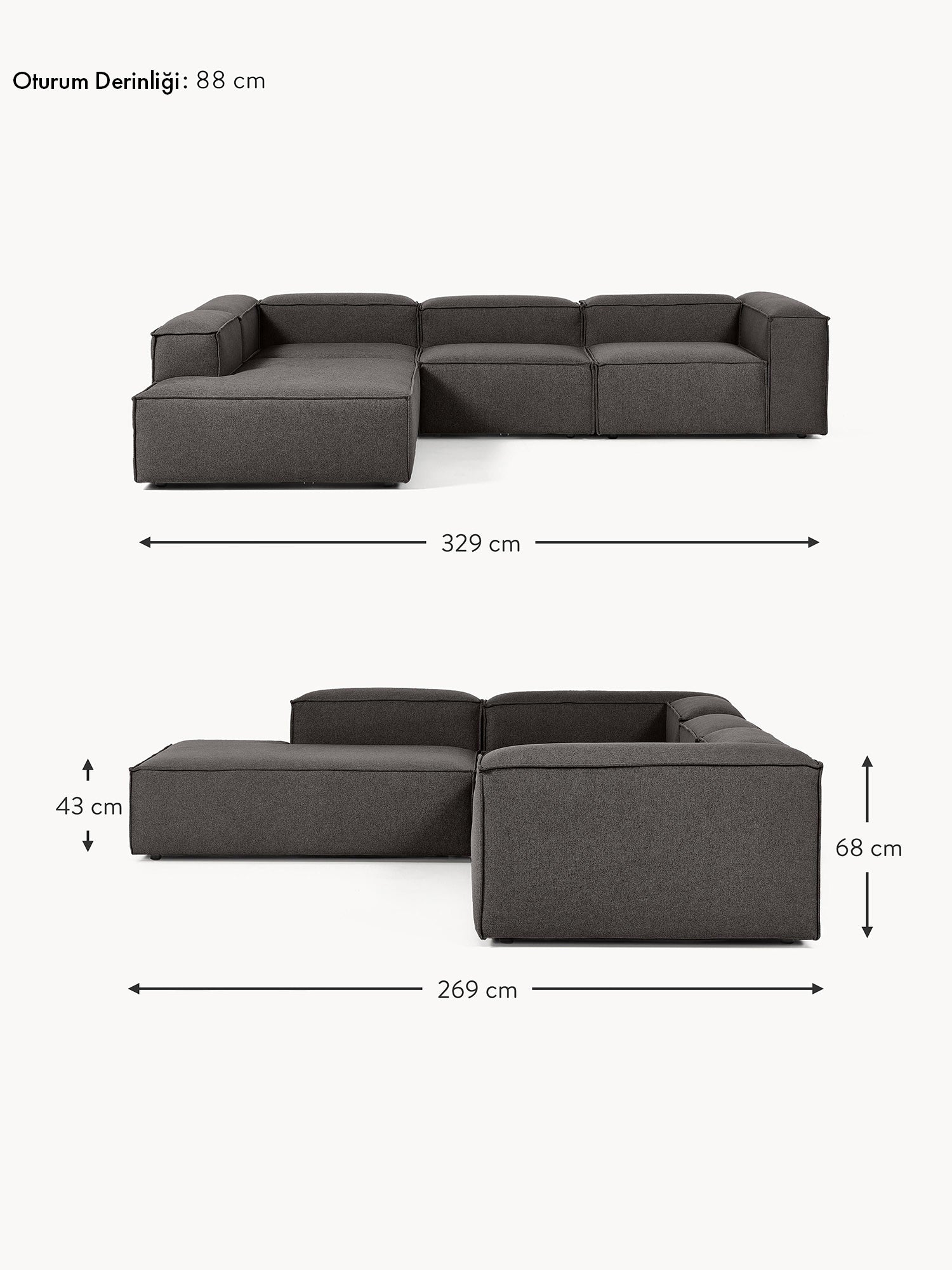 Lego Large Köşe Koltuk Antrasit - Sağ Köşe ön siparişin alındı ürün stoğa girer girmez gönderim sağlanacaktır.