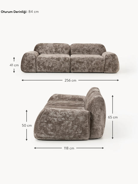 Prag Üçlü Koltuk Boz Kahverengi Teddy