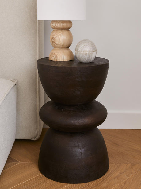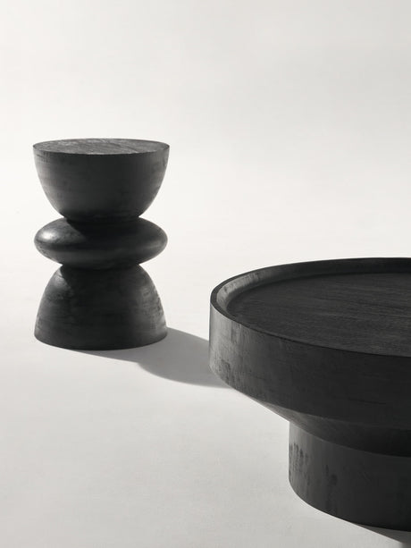 Torna Ahşap Yuvarlak Yan Sehpa Siyah