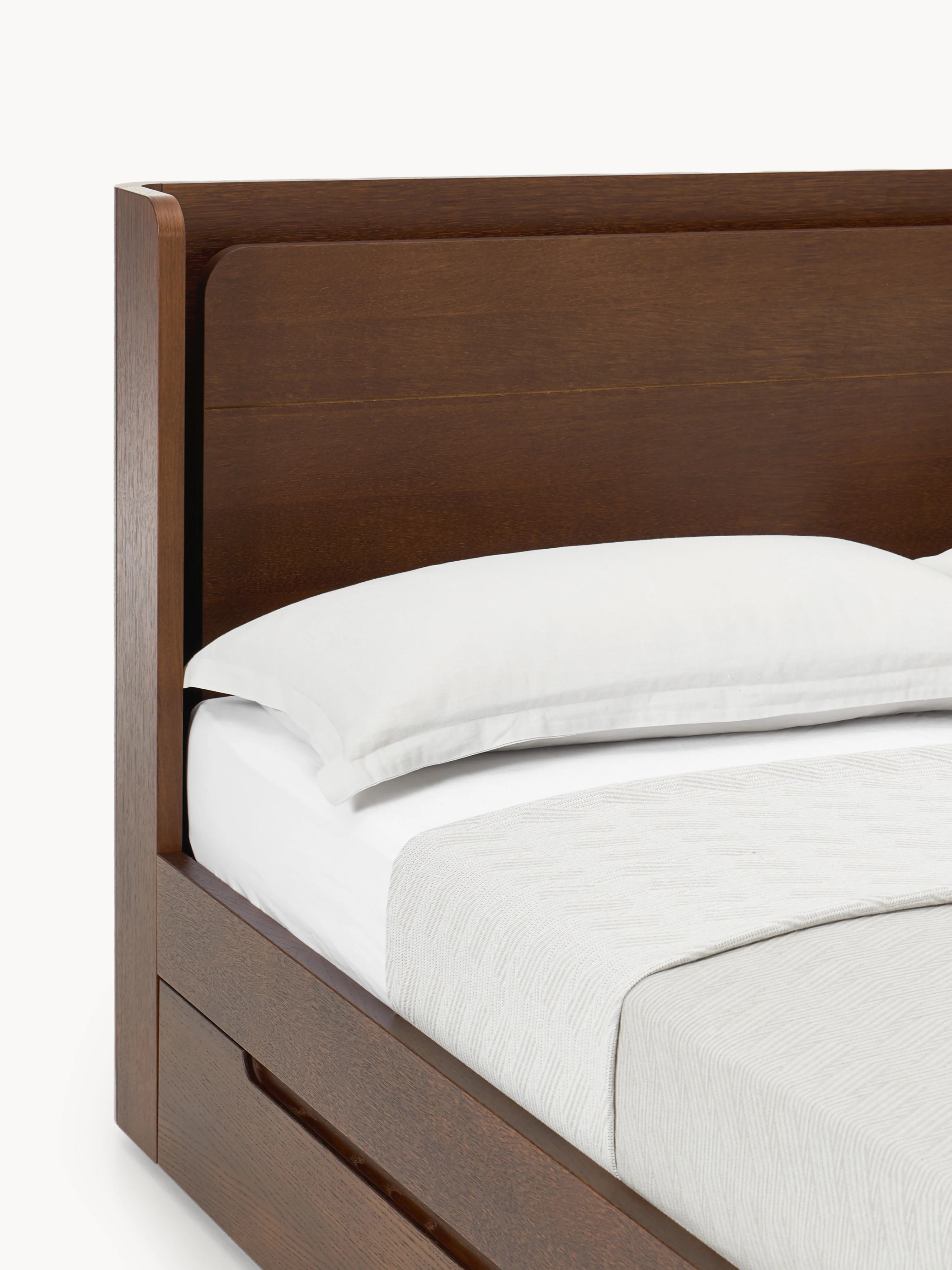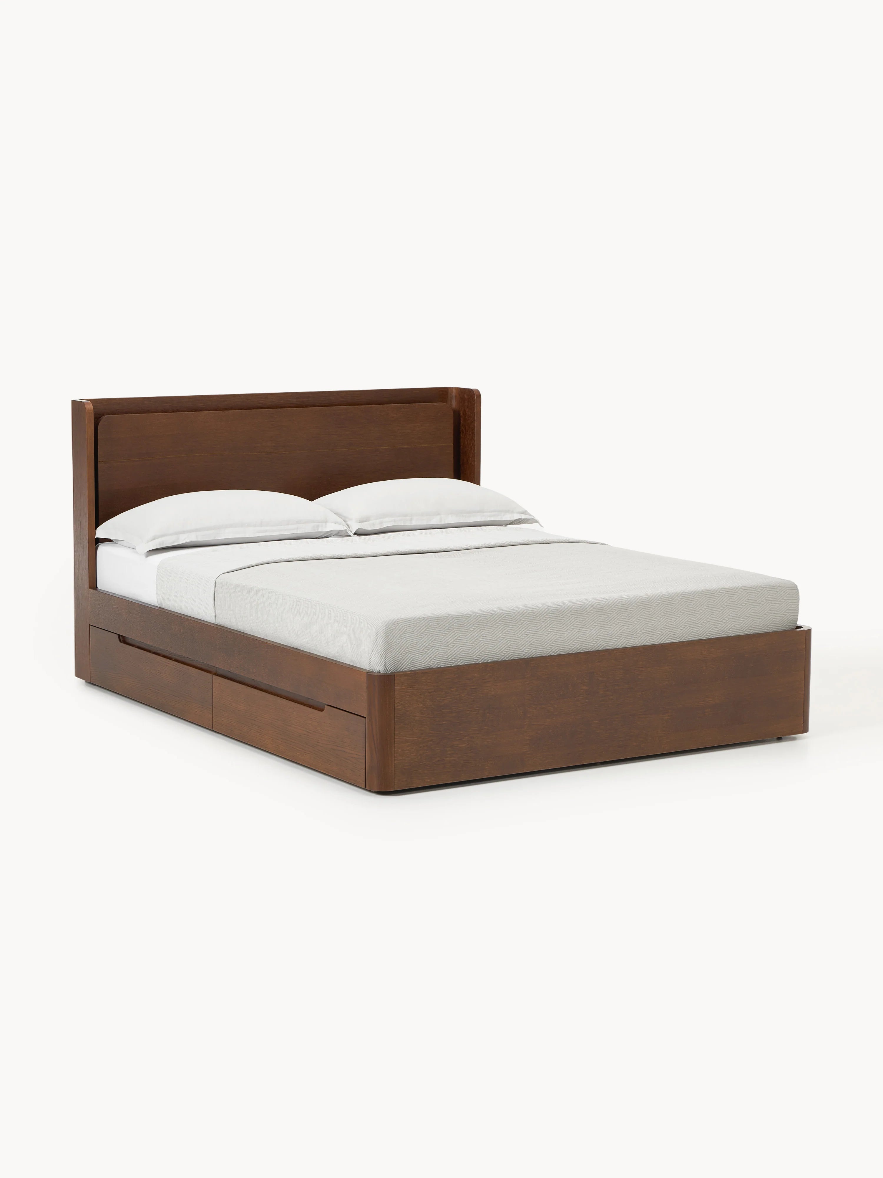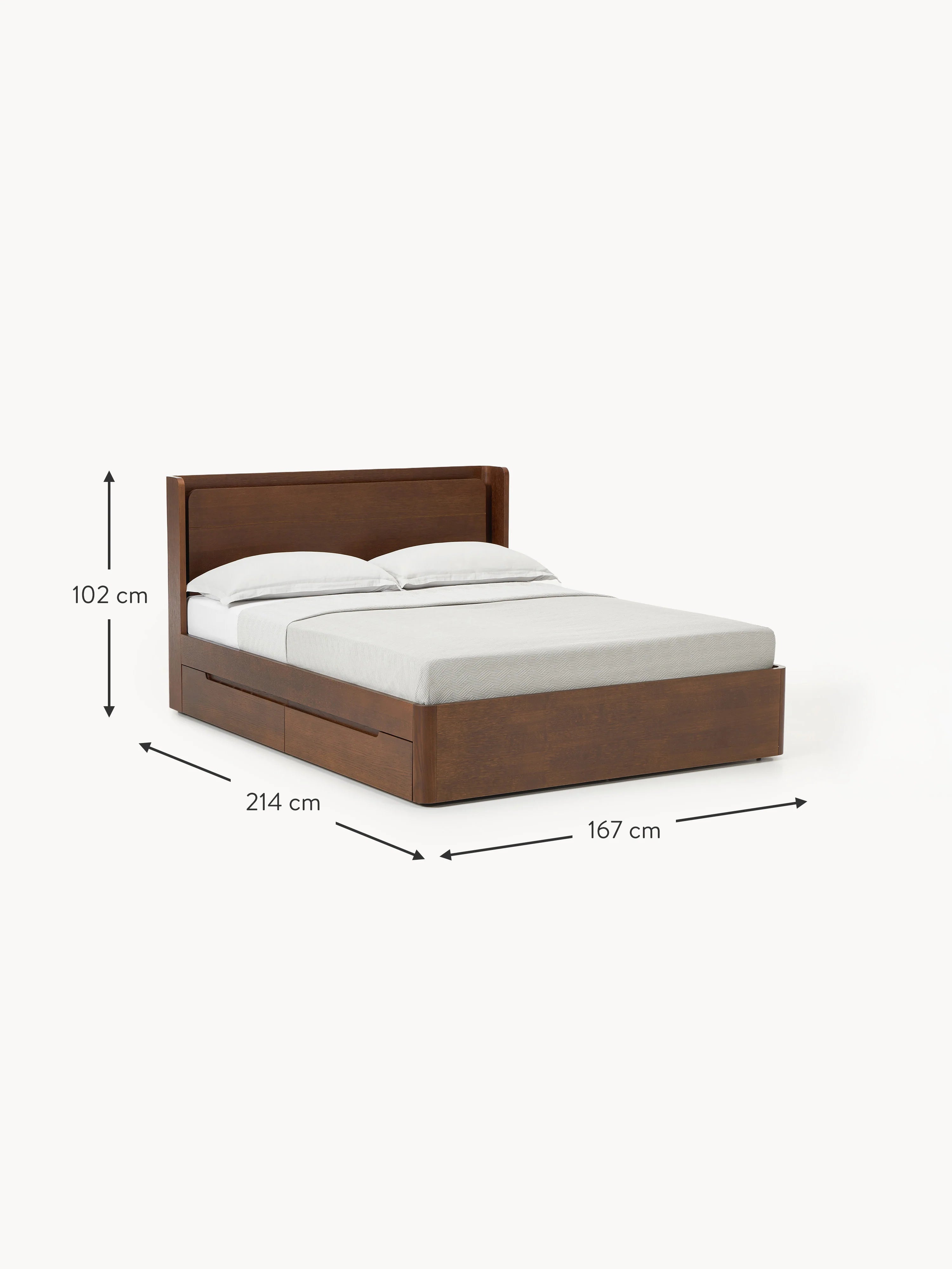 Yumuşak hatları ve dengeli görünümüyle Mola Çift Kişilik Ahşap Karyola, yatak odasında sakin bir atmosfer yaratır. Yüksek başlık, yavaş sabahlar veya rahat akşamlar için rahat bir destek sağlar. Entegre çekmeceler, günlük ihtiyaçlarınızı düzenli bir şekilde saklar. Düşünülmüş detaylar, akıllı işlevselliğe kusursuz bir şekilde uyum sağlar. Teslimat, latalı yatak ve yatak hariç yapılır. Ahşap yatak dört çekmeceye sahiptir.
