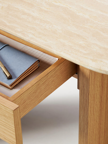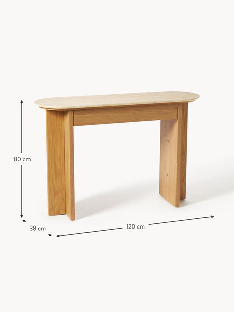 Erol Traverten Mermer Tablalı Ahşap Dresuar Meşe