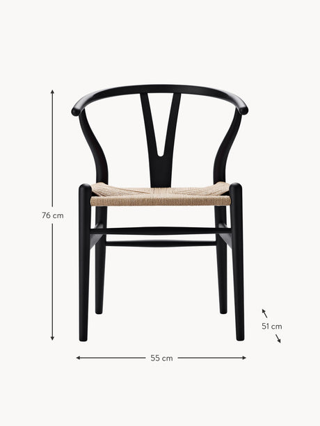 Wishbone Hasır İşlemeli Ahşap Sandalye Siyah